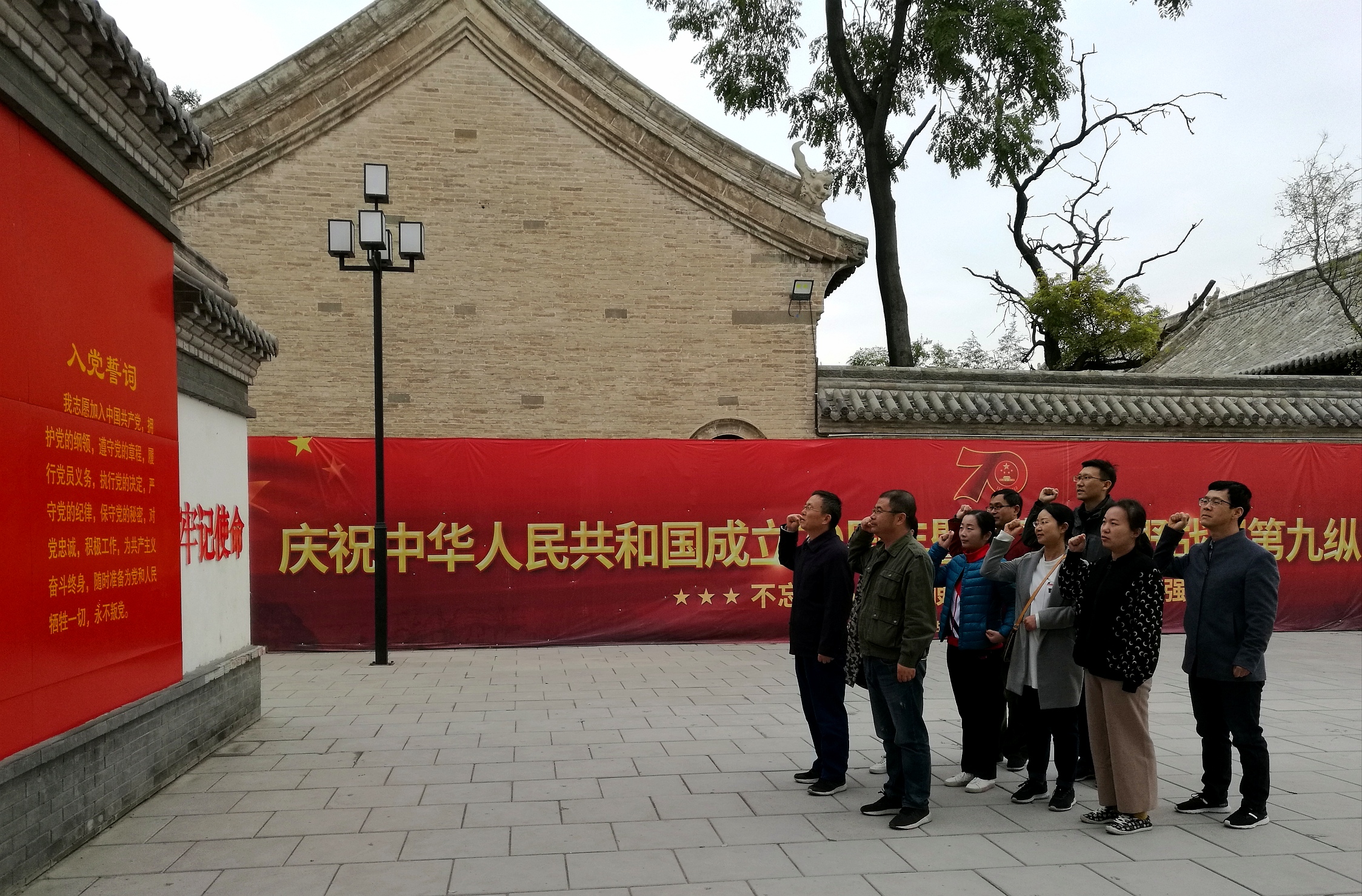 大家参观了晋冀鲁豫野战军第九纵队及中国人民志愿军第十五军军史陈列馆、红色教育陈列馆、秦基伟家风馆等红色教育点,然后在宣誓墙前,重温了入党誓词。党支部书记朱雪里,以《重温党的光辉历程,牢记党的初心使命》为题,现场为党员们上了专题党课。他带领大家回顾了中国共产党的伟大历程和共产党人坚守“为人民谋幸福、为民族谋复兴”初心,一路奋斗所取得的辉煌成就,阐释了新时代一名合格党员的要求和必备素质。他希望大家通过重温党的光辉历史,坚定共产主义信念,增强宗旨意识,牢记党的初心使命,努力发挥党员干部先锋模范作用。