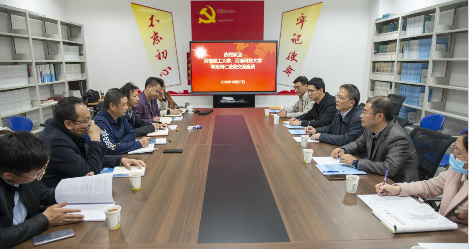 10月27日,中心主任朱雪里带领全体编辑人员到华北水利水电大学学报编辑部调研交流,与华北水利水电大学学报编辑部及同时到访的河南科技大学学报编辑部同仁就期刊建设与发展、期刊编校质量提高、优质稿源扩展等方面进行了座谈。