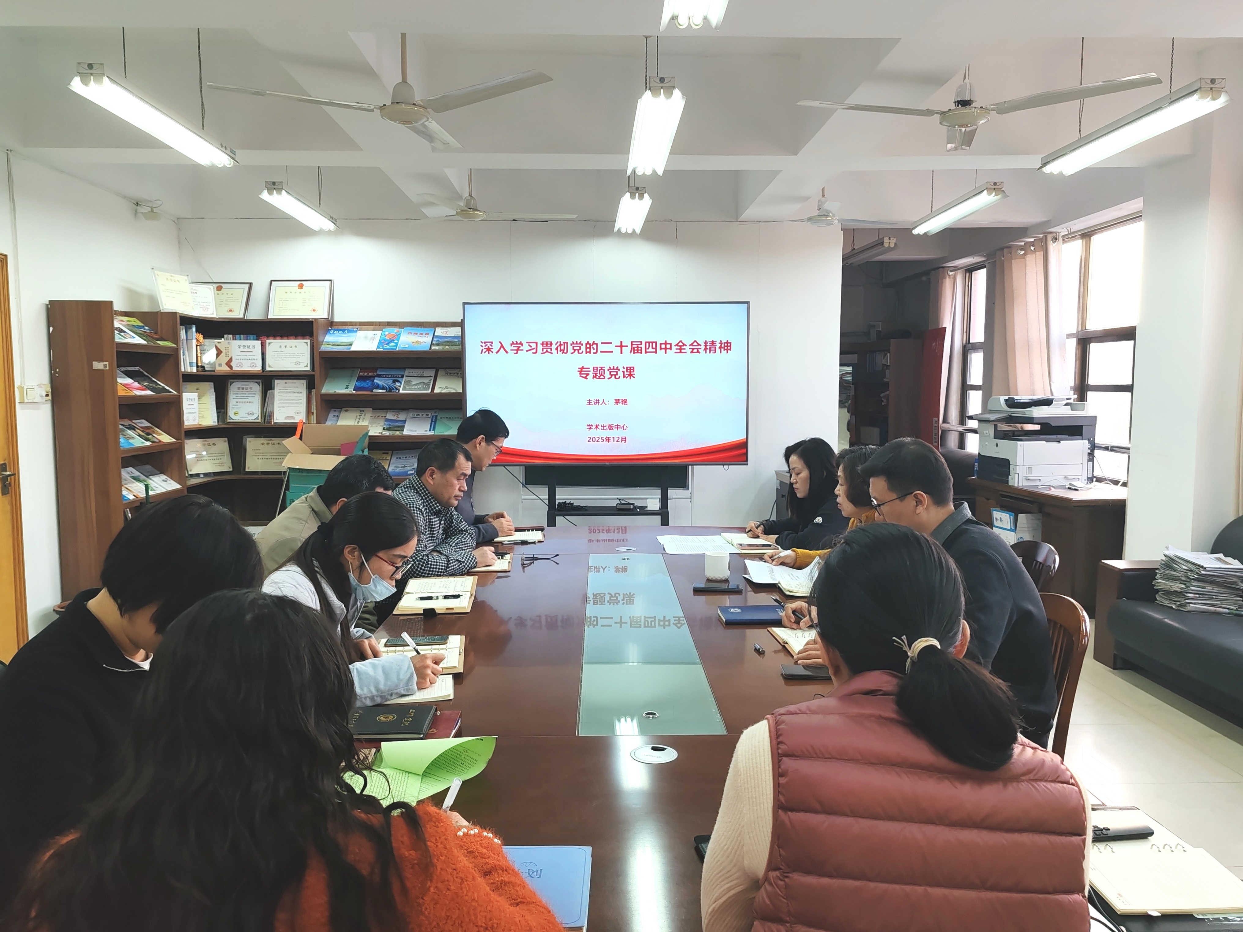 为深入学习宣传贯彻党的二十届四中全会精神,将全会精神转化为推动学报高质量发展的强大动力,12月2日,中心党支部书记茅艳以“深悟全会精神 赋能出版发展”为主题,在力行楼430室为全体党员讲授专题党课。