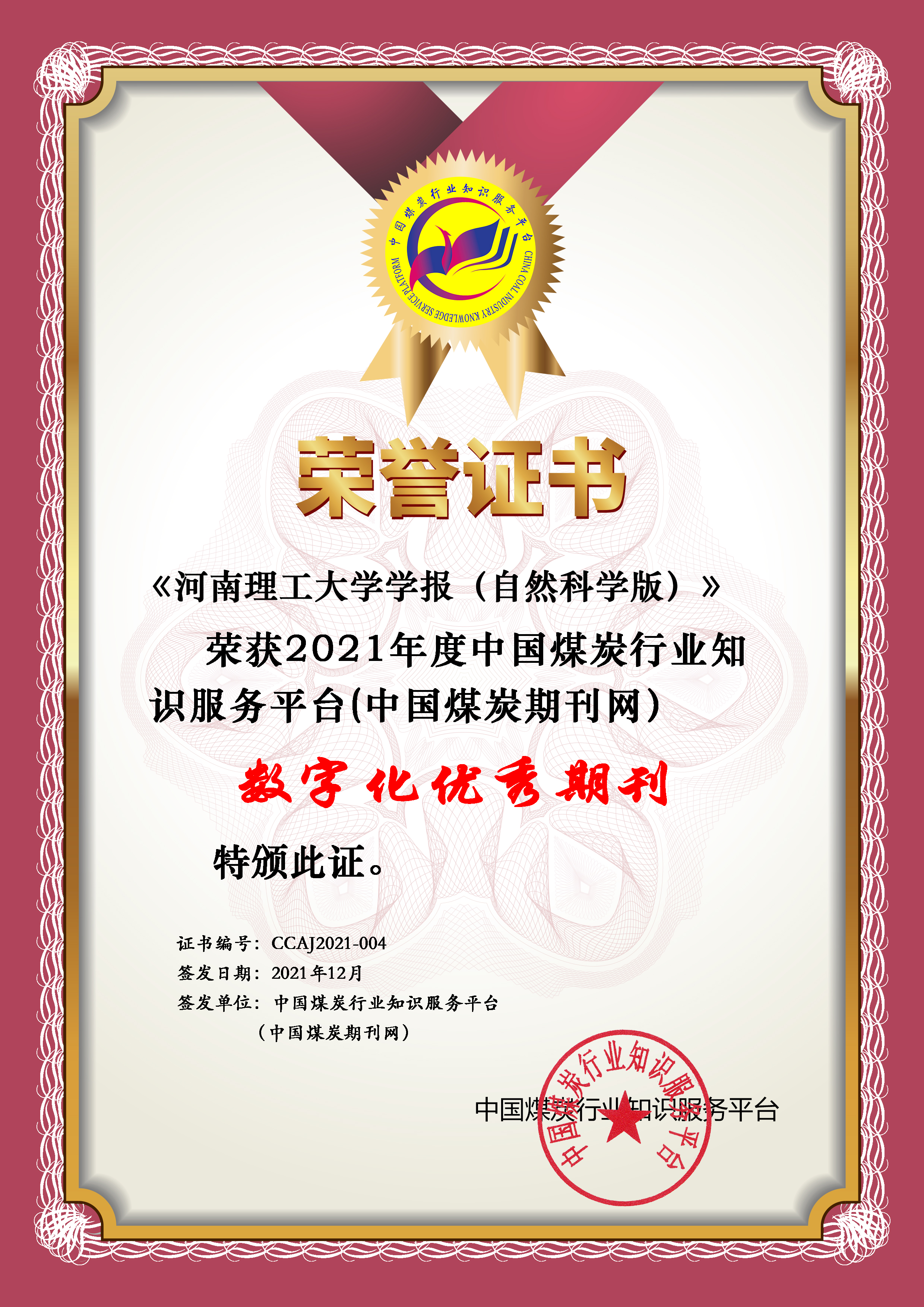 为进一步贯彻落实中国科协、中宣部、教育部、科技部联合印发的《关于深化改革培育世界一流科技期刊的意见》文件精神,推进煤炭行业期刊数字化发展,表彰数字化出版优秀期刊,近日,中国煤炭行业知识服务平台根据开放获取论文量、点击量和下载量等指标对加盟期刊进行了综合评定。《河南理工大学学报(自然科学版)》被评为“2021年度数字化优秀期刊。”